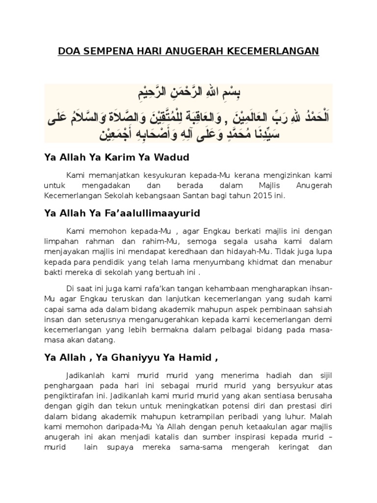 Doa dibaca memohon rahmat Semoga majlis sentiasa diberkati. Kertas Kerja Hari Anugerah Cemerlang Set 2. Ya Allah Ya Rahman Ya Rahim.